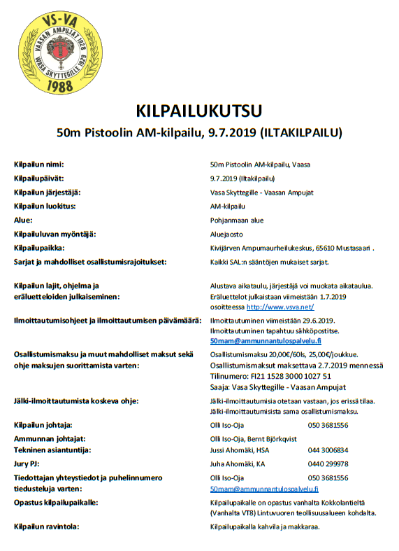 Juha Vaahtoniemi | M60 | VS-VA | X | |